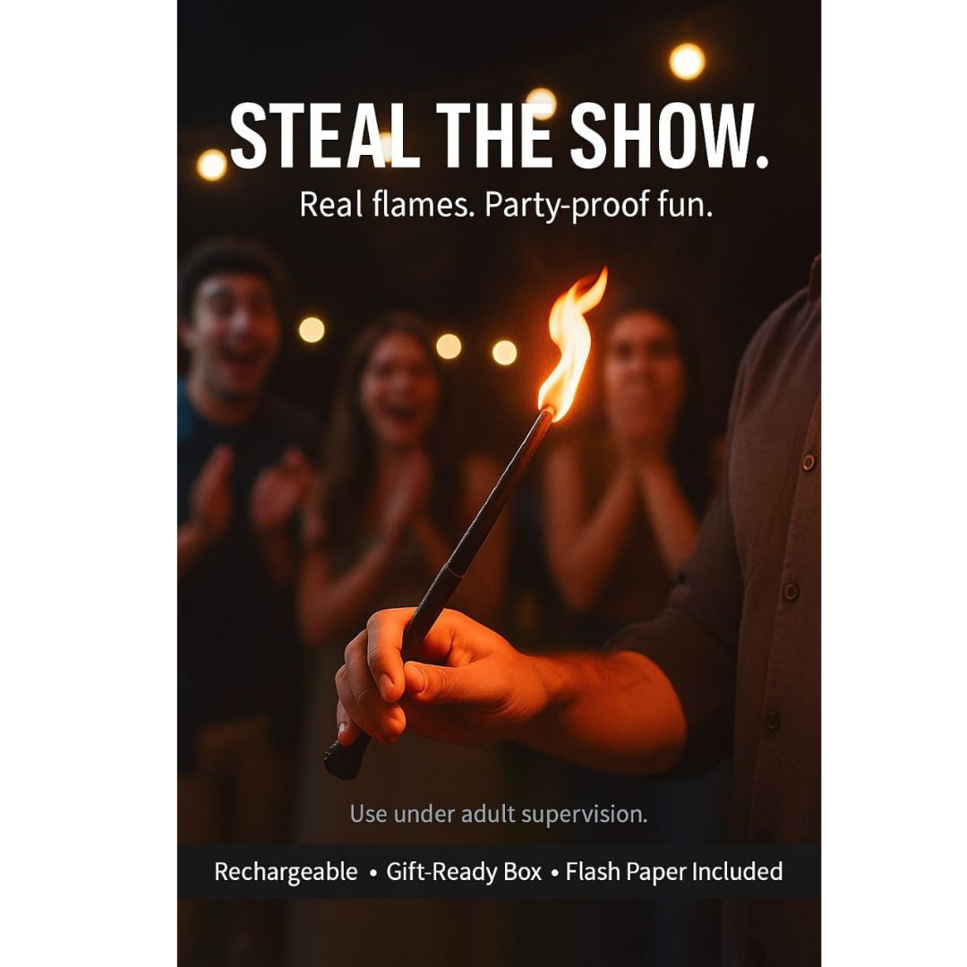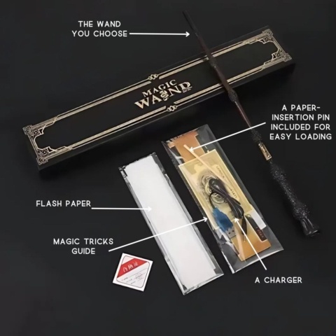 Our magic wand is completely safe. It uses flash paper, the same material professional magicians use in their shows. The paper burns instantly and does not create long-lasting combustion, making it safe when handled properly