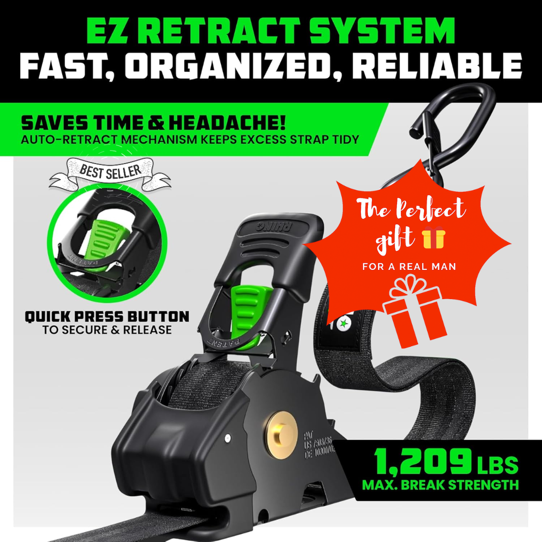 Secure your cargo in no time with ourĀ Upgraded Retractable Ratchet Straps.